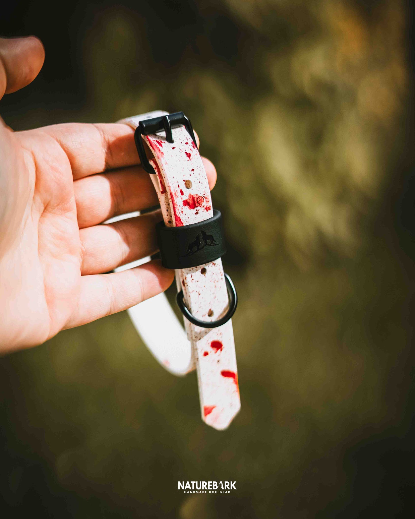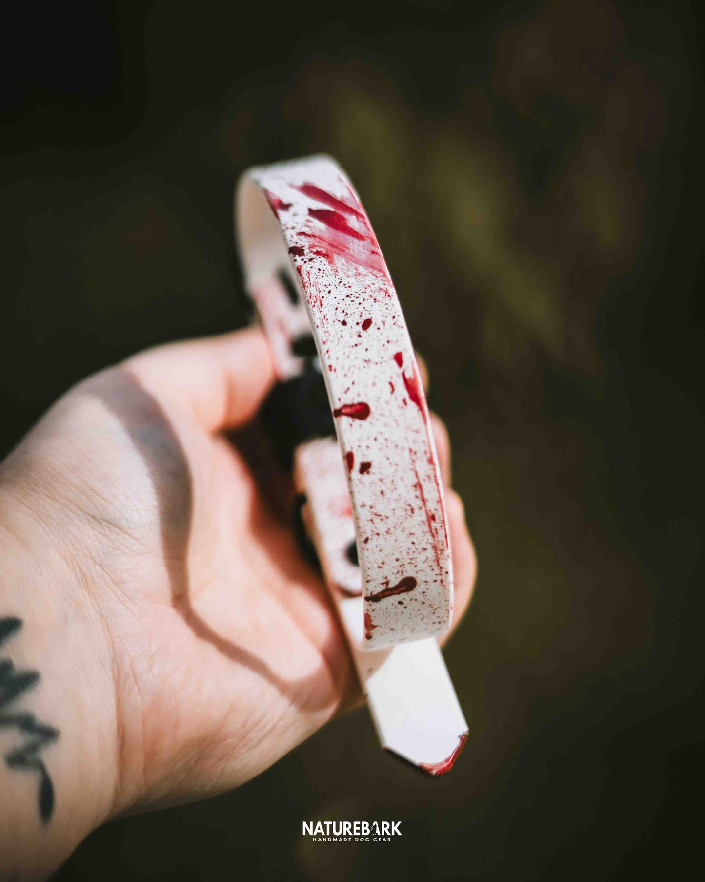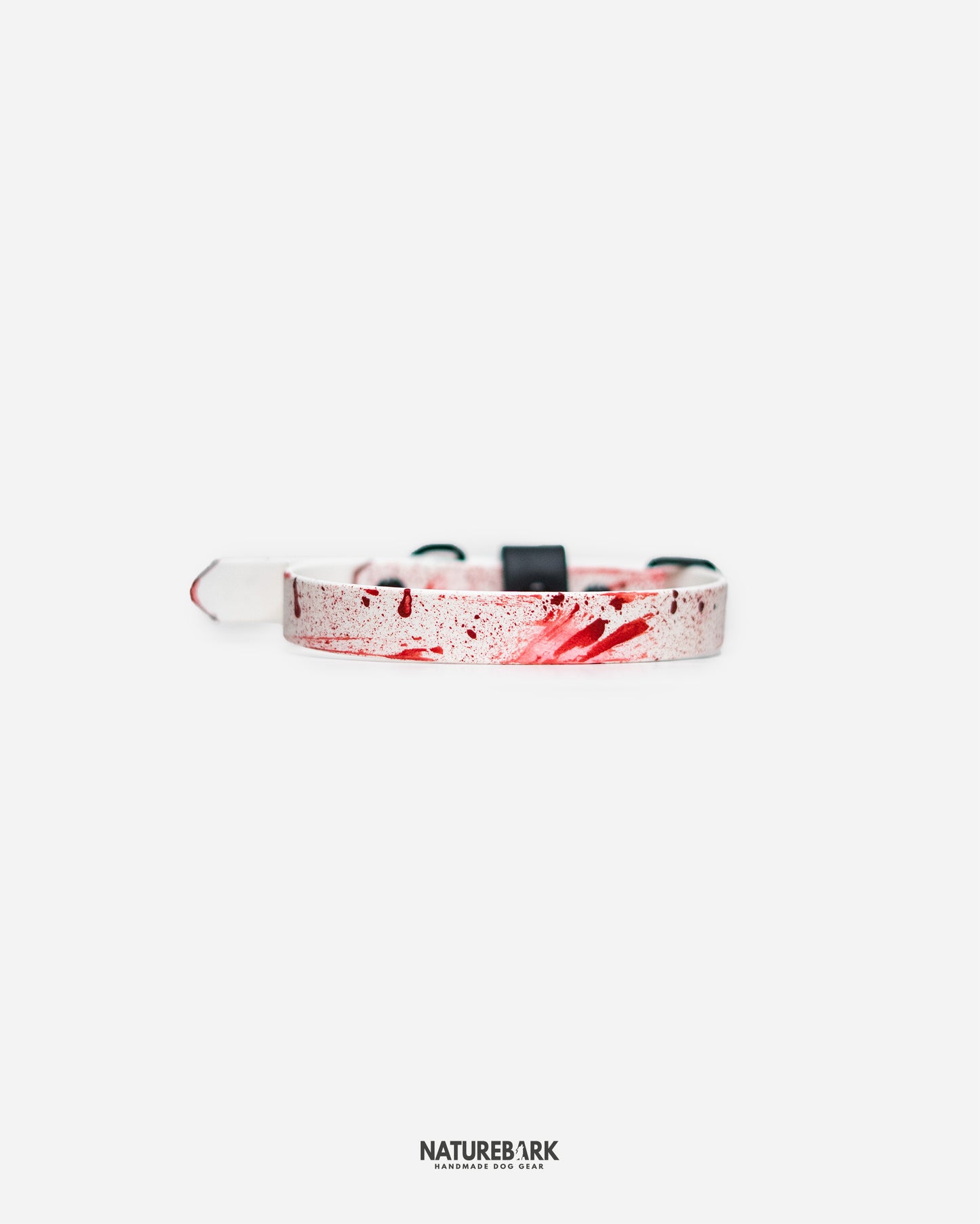 Für echte Horrorfans. Das Design ist mittels spezieller Farbe aufgetragen und versiegelt. Somit ist es genau so Robust und Wasserfest wie die anderen Halsbänder. Jedes Halsband wird dadurch ein absolutes Unikat.