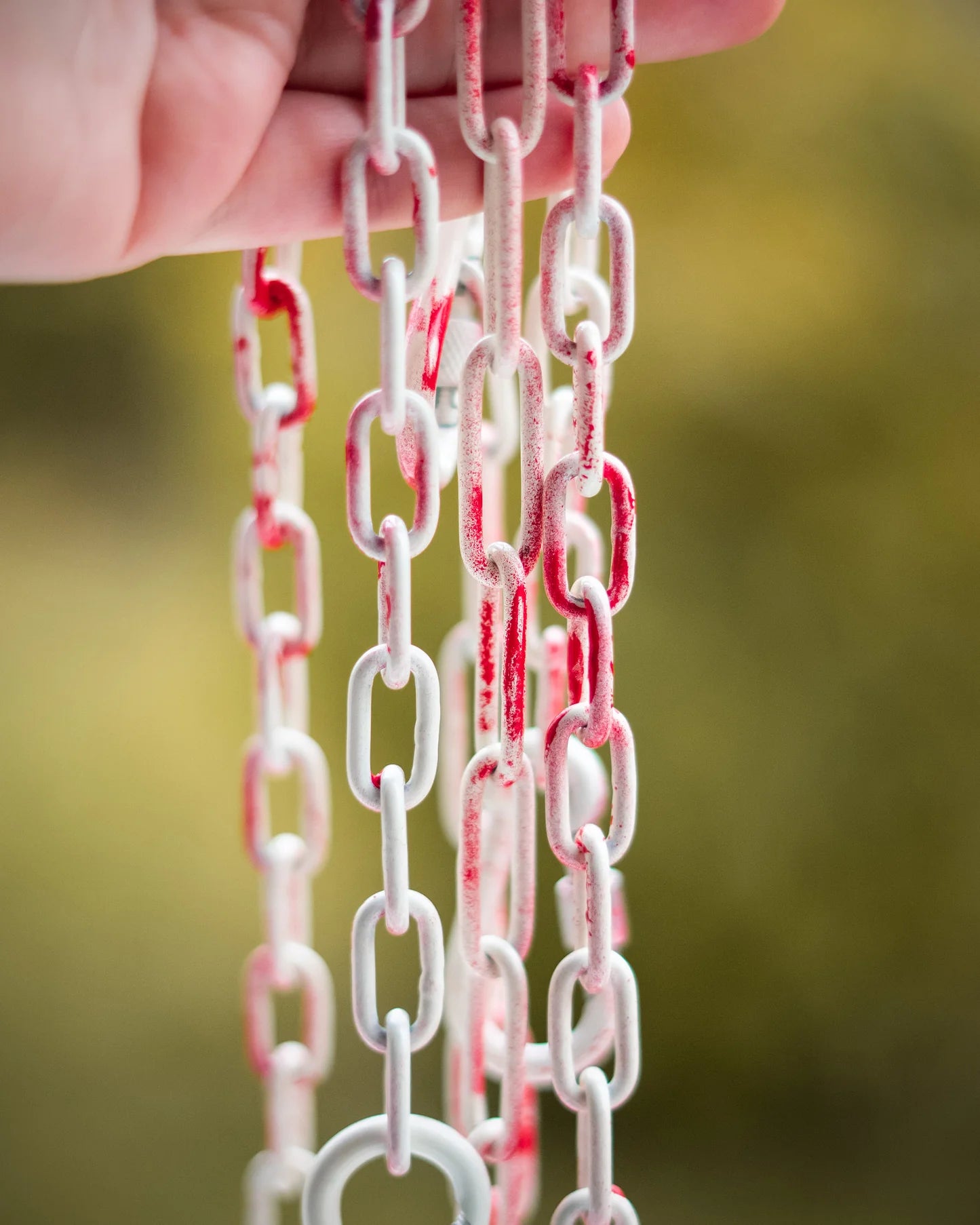 Auch mit sehr hochwertigen Farben und sorgfältiger Verarbeitung lässt sich dieser Effekt nicht vollständig vermeiden – er gehört zur ganz normalen Abnutzung bei beschichteten Ketten. Die Funktion bleibt dadurch aber unbeeinträchtigt.