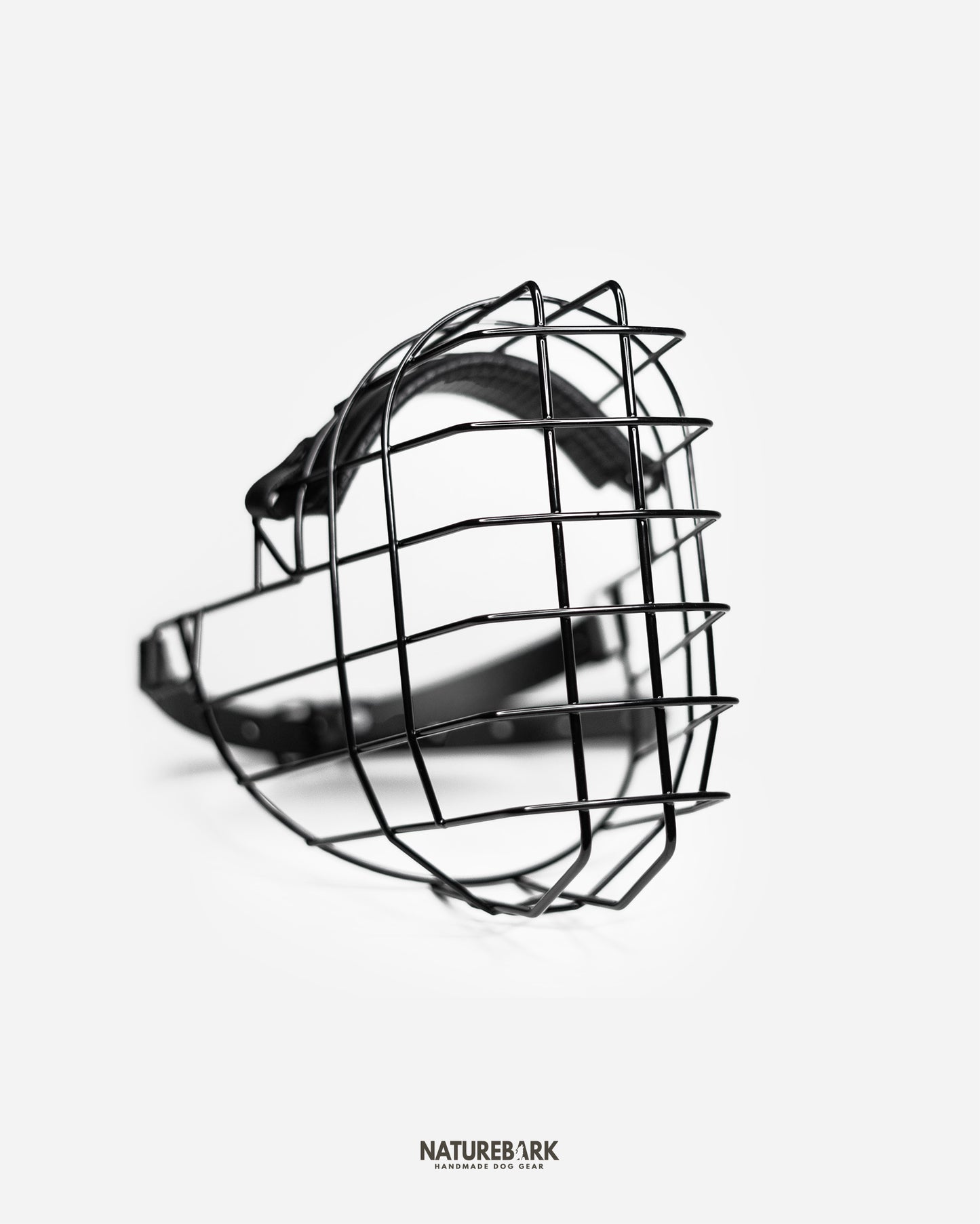 Der Korb bekommt seine Farbe durch Pulverbeschichtung und wird mit BioThane Riemen ausgestattet. Unser Nasenpolster ist vernäht. Alle Schrauben sind verklebt.