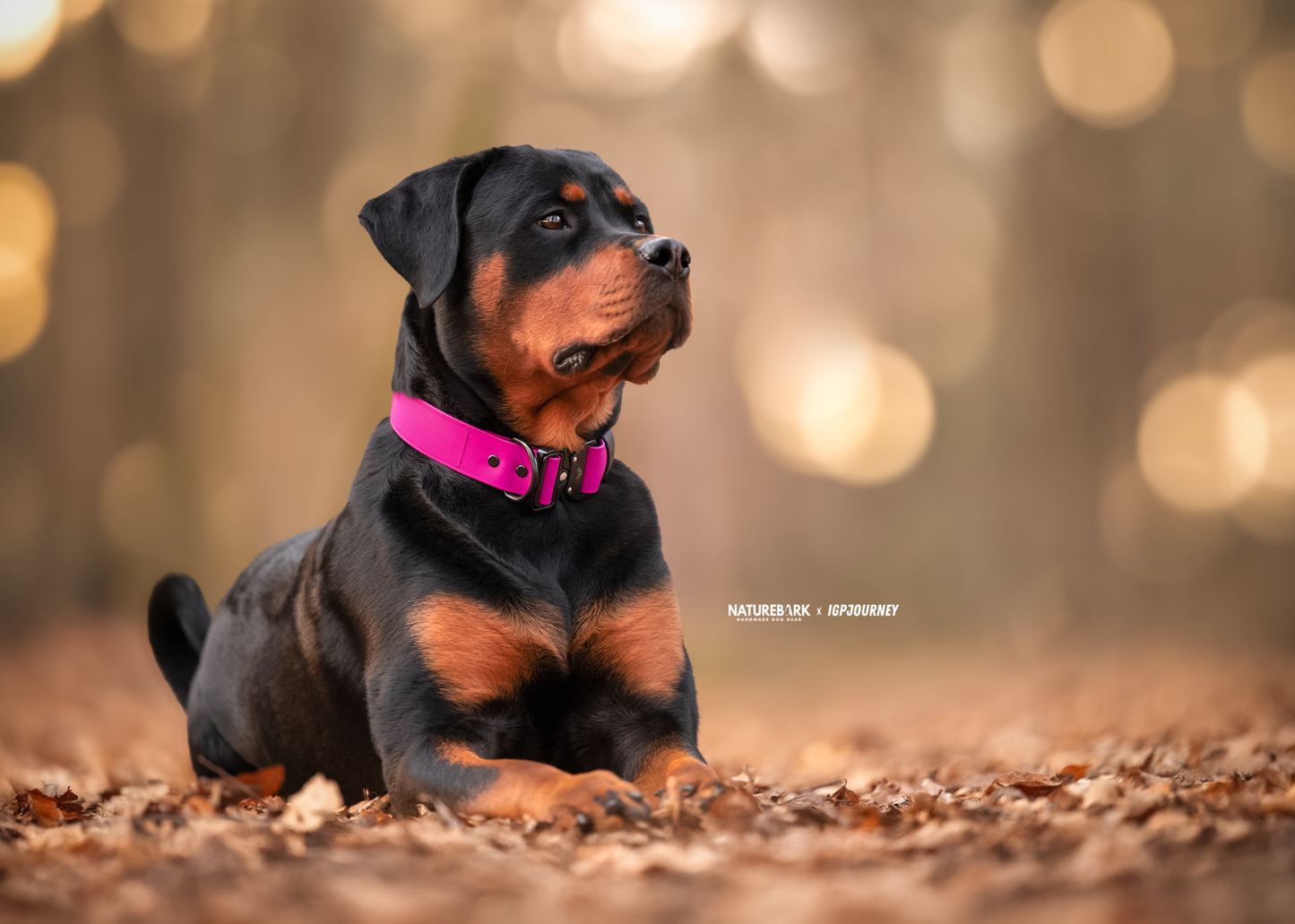 Gefertigt aus robustem BioThane ist es das perfekte Halsband für Wind und Wetter — Sonne, Wasser oder Schnee.