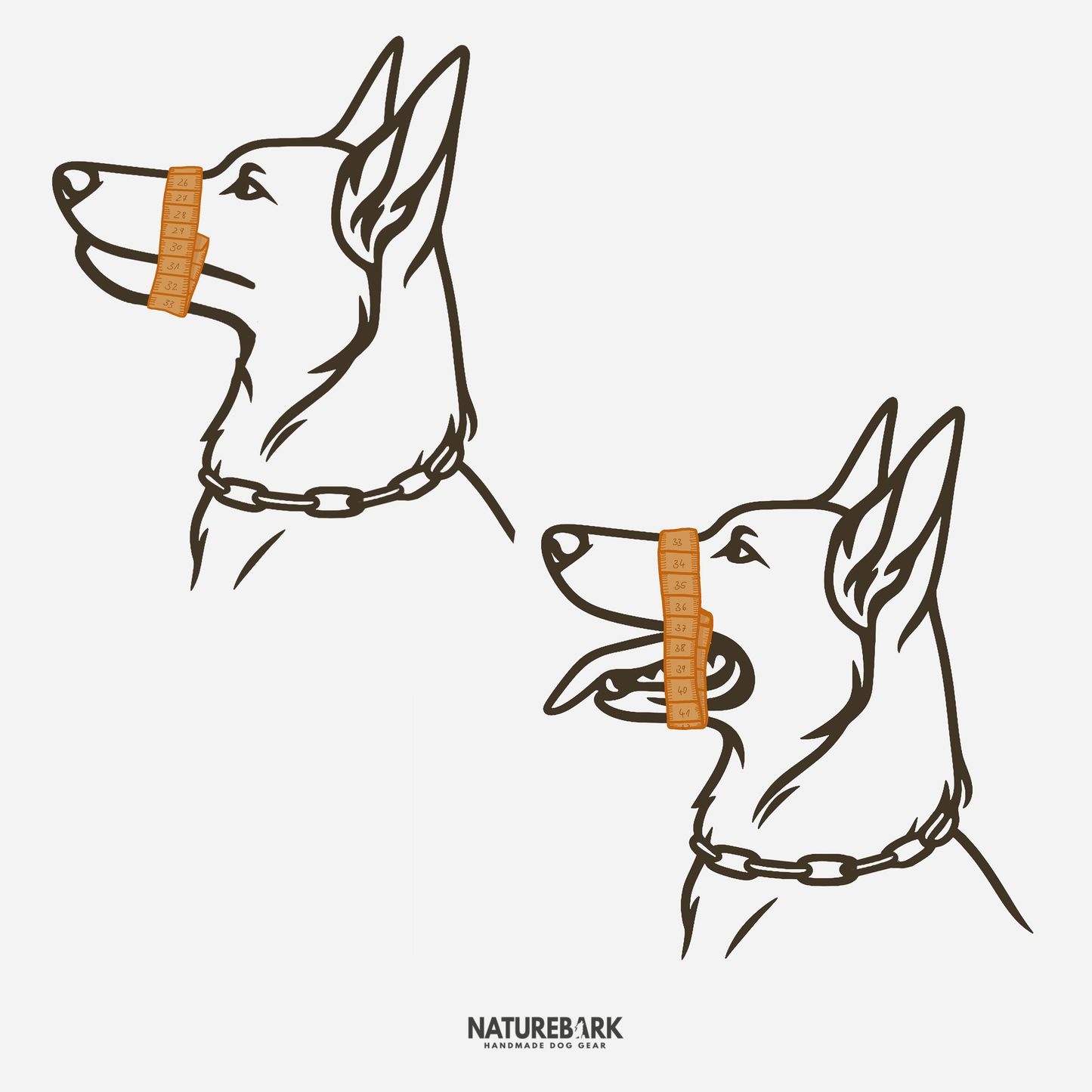 👉 Wichtig: Bei Hunden mit Unterbiss oder besonderer Kopfform (z. B. wenn die Nase kürzer ist als die Schnauze selbst), misst du bis zum längsten Punkt der Schnauze.