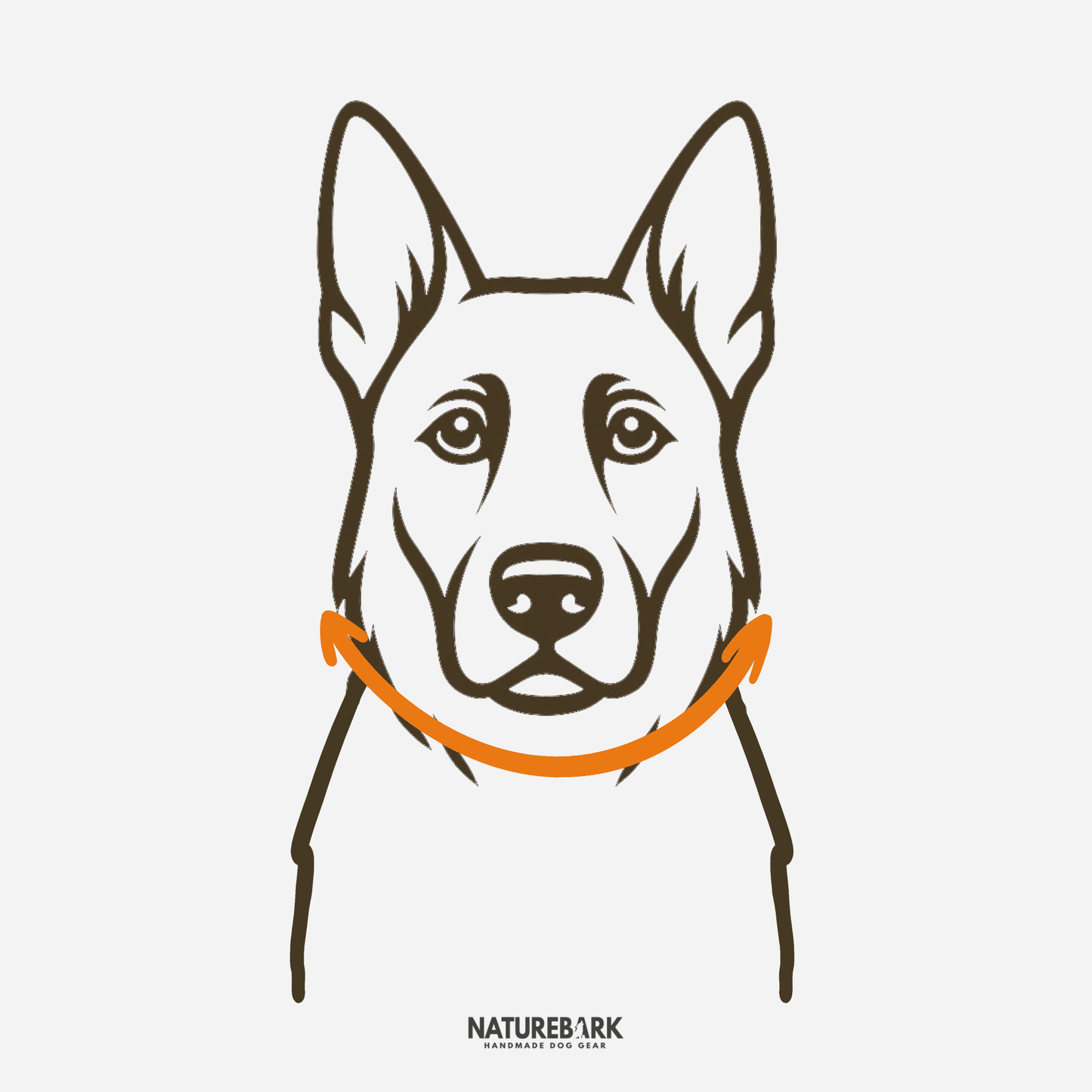 Miss entlang der Kehle deines Hundes, knapp unterhalb der Ohren, von einer Seite zur anderen. Gib uns diesen Wert an, damit wir den Kehlriemen so anfertigen, dass er noch individuell verstellbar ist.