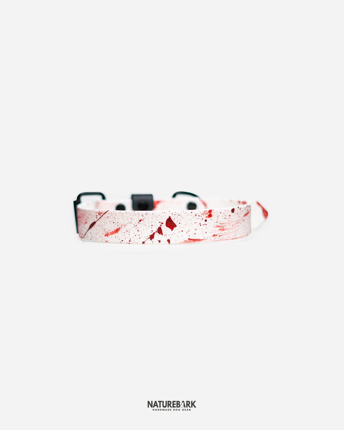Für echte Horrorfans. Das Design ist mittels spezieller Farbe aufgetragen und versiegelt. Somit ist es genau so Robust und Wasserfest wie die anderen Halsbänder. Jedes Halsband wird dadurch ein absolutes Unikat.